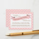 A charming poem requests that guests bring a book for the baby-to-be to start the new mum off with a library of beloved children's books. Just insert this sweet card inside the baby shower envelope, the sweet pastel pink and white diamond pattern is perfect to coordinate with just about any baby girl shower invitation too.