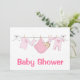Cute pink baby shower invitation with a cute baby girl drawing courtesy of Kaz/Designed by Janet Palaggi