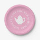 Pink baby shower tea party plates with custom text. Elegant little teapot design for cute little newborn boys and girls. Elegant typography design with tea pot for baby shower event.