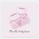 A cute pair of pink baby socks that will be perfect for a baby shower or a birth announcement.
