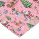Christmas-themed pattern featuring Santa Claus, reindeer, snowmen, elves, Christmas trees, candy canes, and snowflakes on a pink background