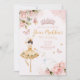 Personalise this pastel pink ballerina themed floral birthday invitation easily and quickly. Simply click the Edit Using Design Tools button to further edit the text, change font styles and font colours. Featuring a ballerina dressed in a beautiful gold costume, elegant pink flowers, rose gold tiara and pink and gold butterflies. The butterflies, ballerina and crown are moveable, resizable, multipliable and removable. Customise it to suit your occasion. Matching items available in store. (c) Somerset Fine Paperie by The Happy Cat Studio.