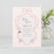 Beautiful pink watercolor ribbon frame surrounding lovely fonts and scripts done in coordinating colors baby shower invite. Ballerina tutu, slippers and other sweet girly whimsical accents coordinated pink pastel background. A perfect baby shower invitation for any season.
