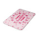 Bath mat design features an original marker illustration of a pink ballet tutu and pair of pink pointe shoes, surrounded by polka dots. Ideal for the dance studio bathroom! Just personalise with your information.