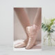 A ballet dancer's lower legs and feet in pretty pink pointe slippers.