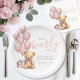 Pink Balloon Bear Baby Shower Paper Plate