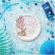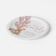 The design is simple and minimal with a sweet, elegant feel that looks lovely on dessert tables, place settings, or treat stations. Fonts, wording, and background colors can be customized to match your baby shower theme, making these plates a charming choice for celebrating a baby girl.