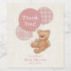 Use these adorable teddy bear wine labels at your teddy bear themed baby shower. These wine labels feature a cute hand drawn teddy bear holding a pink buffalo plaid balloon that says "thank you!". Text can be edited and is customisable!