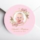 Pink Baptism Girl Photo Gold Cross Orchids Floral Classic Round Sticker