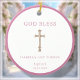 Customisable Baptism ornament keepsake gift, featuring a gold crucifix and pink border.