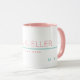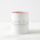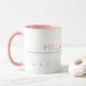 Simple and personalised pink and white coffee-mug... with your name and custom text on it