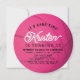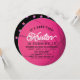 This classic "It's game time!" girl's birthday circle invitation features a pink basketball with bold lettering. The reverse side features a black background with pink star patterns. Personalize it for your needs. You can find matching products at my store.