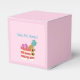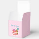 Provide your guests a little something to remember your twin baby shower with this pink favour box with beach bag on the front. Customisable text.