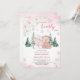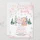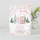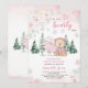 Celebrate the upcoming arrival with our adorable Pink Bear Baby Shower Invitation! Featuring a charming winter scene, this invite showcases a cute pink bear surrounded by whimsical pine trees, delicate snowflakes, and soft florals, making it perfect for a girl baby shower. BBS557