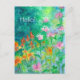 A pretty floral hello post card decorated with a pink bee balm flower garden with orange and red flowers painted in watercolor. You can change or delete the wording to fit your needs.