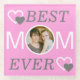 Pink Best Mum Ever Personalised Mothers Day Photo Glass Coaster. Clean and simple Pink, White and Grey design. Add your cute family picture to make a personal keepsake for the office.