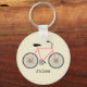 A keychain featuring an illustration of a pink bicycle. Personalise with your name under bike.