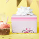 A cool design featuring pink bicycles with a pink ribbon for cancer awareness tied to the handlebars, a fun border of stripes.