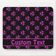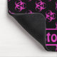 Black mousepad with a repeating biohazard symbol pattern in bright pink and editable text field, personalise with up to 15 letters, numerals or symbols.
