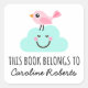 Pink bird on happy cloud cute bookplate square sticker