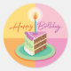 A colourful slice of birthday cake with pink and green decorative icing round sticker to put the finishing touches on all your birthday wishes.