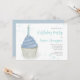 This design features a blue kids' boy cute cupcake invitation with birthday candle blue sprinkles, a whimsical fun party celebration, a stylish trendy calligraphy script, a creative dessert cake sweet treat, with colourful pastel colours typography design, an adorable birthday party kids' invitations, a watercolor teal frosting style, a birthday cupcake cake theme, for kids children birthday party invites