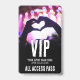 Concert Ticket All Access Special Event VIP Badge. Perfect for concerts, special events like conferences or speakers, and even birthday parties. This design features a fun concert-themed vibe with someone holding their hands in a heart shape silhouette. The background now has a stylish pink and black aesthetic, with vibrant pink lights and subtle hints of blue scattered throughout for an energetic glow.