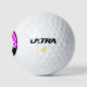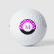 golf ball with your custom monogram, black and pink with cute feminine white hearts