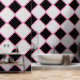 Pink Black and White Diamond Chequerboard Dramatic Wallpaper
