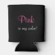 Cool can cooler with a design stating your colour so you know just which can is yours! The background is black. Text for the saying is "Pink is my colour!" in a nice typography mix of hot pink and white. Check out our other "my colour" can coolers too!