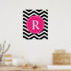 Customise this vibrant pink, white and black chevron pattern and monogram design with your initial.