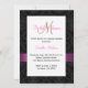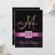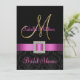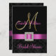 Sophisticated elegance is conveyed by this beautiful Bridal Shower Card design. A black on black damask pattern serves as a background for a photo effect of the Metallic Gold Initial M and a Fuchsia Pink satin ribbon and diamond brooch ALL PRINTED on FLAT CARD Bridal Shower Invitation. Contemporary, yet classic damask pattern with a design which allows you to personalise the front with the bride's name and the back is free to add your customised bridal shower invitation text. Invitation is set for monogram initial "M". For other letters, different ribbon colour and background please contact designer at luxuryweddinginvitations@gmail.com. Layout Design by Elke Clarke©. Graphics licensed. Also, choose from a variety of fonts and beautiful papers to make your invitations PERFECT!