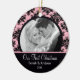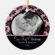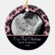 Pink & Black Damask Photo First Christmas Ornament