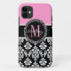 PINK, BLACK DAMASK, YOUR MONOGRAM ,YOUR NAME Case-Mate iPhone CASE