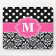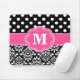 Show off your personal style in a fun way with this pink and black dots and damask monogram mousepad.