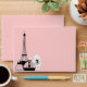 Pink Eiffel Tower Paris envelope complete with Paris bound fashion luggage, purse and poodle.