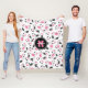 This cute soccer themed fleece blanket for girls features a pattern of varied size soccer balls turned every which way - some of the black panels on the soccer balls have been recolored pink - customise with soccer player's name and monogram or jersey number - by katz_d_zynes