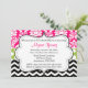 Invite your guests to your Baby Shower, Bridal Shower, Birthday party or any event in a fun way with this trendy pink, green and black damask and chevron invitation.