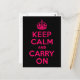 Pink Black Keep Calm and Carry On Postcard