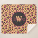 Pink Black Leopard Print Monogram Sherpa Blanket