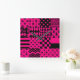 Pink Black Mixed Patterns Patchwork Design Square Wall Clock