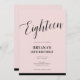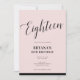 Pink Black Modern Minimal Script Eighteen 18 18th Invitation