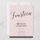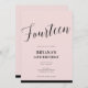 Pink Black Modern Minimal Script Fourteen 14 14th Invitation