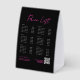 A modern business black and pink neon look price list table tent sign design showcasing your business QR code, business website and social media handle as well as price lists. A minimalist personalized QR code, social media business paper table tent sign. A simple and professional way to allow your customers to scan, pay, view menus, price lists, make appointments etc. Customize the text and make it your own..