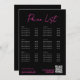 A modern business black and pink neon look price list card design showcasing your business QR code, business website and social media handle as well as price lists. A minimalist personalised QR code, social media business card. A simple and professional way to allow your customers to scan, pay, view menus, price lists, make appointments etc. Customise the text and make it your own..