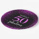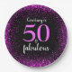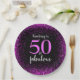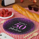 “50 and fabulous.” Be proud, rejoice and usher in 50 with style! This chic, playful, personalised, sparkly pink confetti on a black background paper plate will help make her birthday a party to remember. Your choice of 2 sizes: 7” or 9”. But why choose when you can order both? Matching and coordinating invitations, envelopes, labels, paper napkins, mugs and other items are also available. A great gift for a good friend!