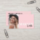 The back includes your contact details—such as phone number, website, email, and social handles—arranged neatly for a modern finish. The blush pink background colour can be changed to fit your brand style, making this an ideal choice for makeup artists who want a polished, minimalist business card.