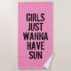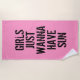 Pink And Black Typography Beach Towel. Girls Just Wanna Have Sun.