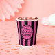 A simple vertical stripe pattern. Fun, bold pink and black colours. Cute gothic, pink Halloween.