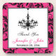 This personalised, modern and trendy hot pink, black and white ballroom chandelier wedding favour coaster set of 6 has a background pattern of pink and black ornate scrolls on it that would be ideal way to thank your wedding guests, or give as a keepsake to the Newlyweds or wedding party attendants. Break up the set of six into pairs of two, drop them into an organza bag, tie off with a ribbon and favour tag, and you'll have a useful favour to hand out. The text is customisable. If you require any other matching items, please email your request to niteowlstudio@gmail.com.